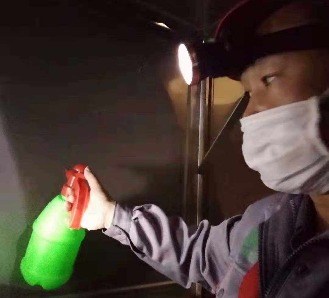 在清洗水箱的過程中,消毒人員須帶護眼鏡、口罩,如在水箱內感到